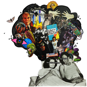 A multidisciplinary artist with a lifestyle of thrifting, Anna Pottie works primarily with secondhand materials; textiles, magazines, and overlooked objects — transforming discarded fragments into bold, layered pieces. She is also a digital illustration artist and graphic designer, which she incorporates into her projects. Her pieces often carry strong themes and complex storytelling.